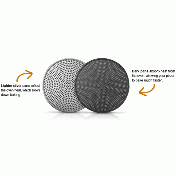 • Super perforated pans have even more holes on the bottom of the pizza pan to increase the crispness and speed up the bake time even more